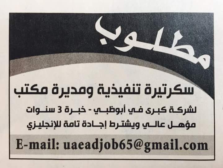 مطلوب للعمل : - سكرتاريه تنفيذية - مديره مكتب - الخبره لا تقل عن ٣ سنوات